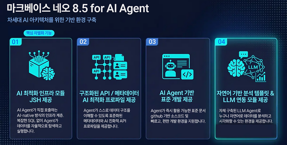 여러분의 AI 애플리케이션이 필요로 하는 데이터 기반을 마크베이스 NEO v8.5가 제공합니다.