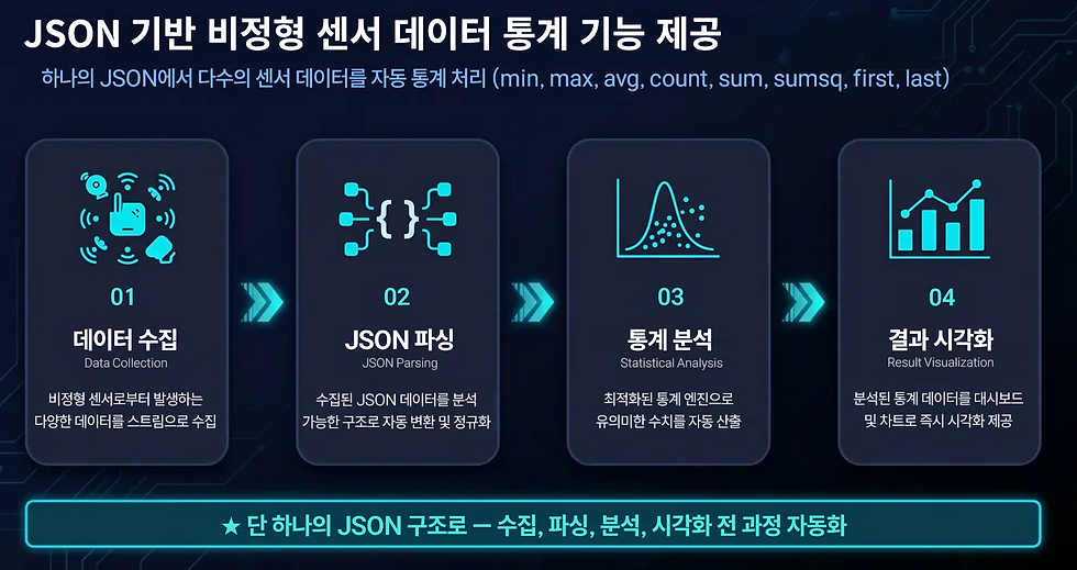 다양한 멤버를 가진 이종의 JSON 구조에 대해 ROLLUP을 직접 적용할 수 있습니다. 사용자는 데이터 내부 구조에 대한 깊은 이해 없이도 자동으로 생성되는 JSON 통계 연산을 손쉽게 활용할 수 있어, 비정형 시계열 데이터 처리 역량이 크게 향상됩니다.